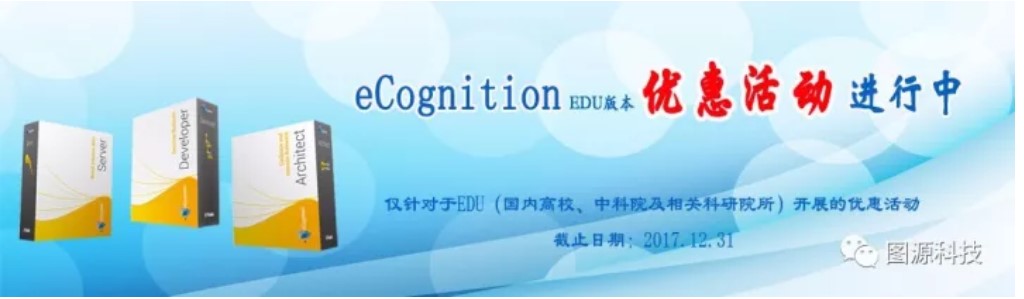 北京jn江南·体育登录入口科技有限公司现针对EDU(国内高校、中科院及相关科研院所)新购eCognition(EDU)软件包的客户推出第二套半价优惠活动,活动截止日期为:2017年12月31日,同时北京jn江南·体育登录入口科技有限公司作为Trimble解决方案提供商为更好的服务广大eCognition用户,现推出图像解译智典(MapCore Wiki),图像解译智典提供面向对象解译算法、规则集、行业解决方案和学习资料(文档、视频、程序)。详情请致电北京jn江南·体育登录入口科技有限公司,电话:010-62908360,网址:www.mapcore.com.cn。