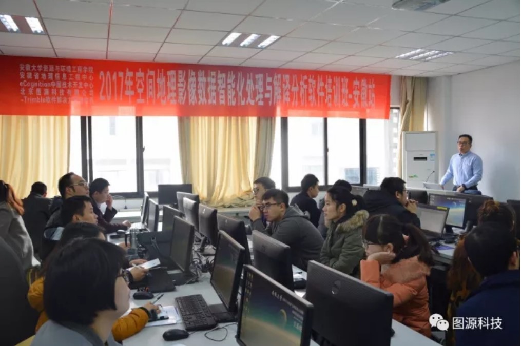 2017年12月2-3日,由美国Trimble公司、北京jn江南·体育登录入口科技有限公司携手国内高等院校和科研院所成立的eCognition中国技术开发中心联合安徽大学资源与环境工程学院和安徽省地理信息工程中心在安徽大学资源与环境工程学院成功举办了“2017年空间地理影像数据智能化处理与解译分析软件培训班-安徽站”。