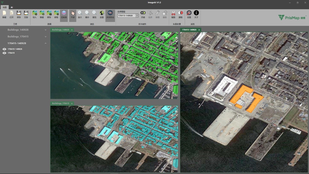 使用ImageAI V1.0软件在多期影像上提取建筑物并发现变化,辅助城市建设调查。