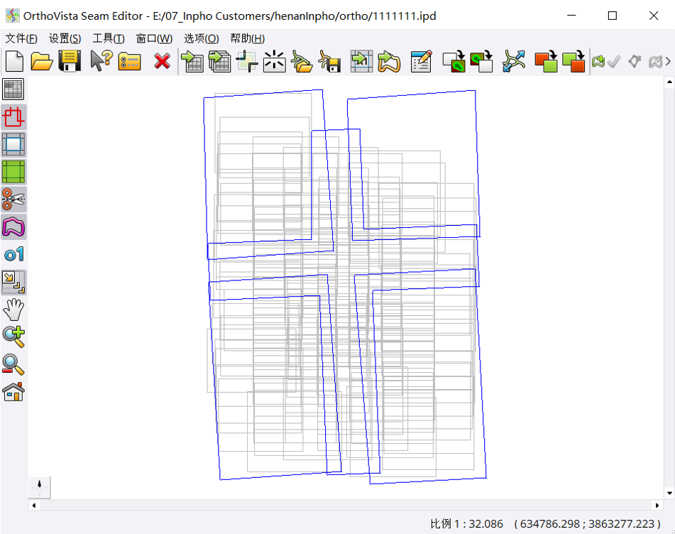 Inpho OrthoVista模块提供海量数据自动匀色镶嵌。自动探测拼接线,并且合理的绕过建筑物,构筑物等重要地物。当然,偶尔也存在拼接线穿过房屋的情况,此时需要我们人工干预。大型项目拼接线质检与交互式编辑一个人处理效率低,多人共同处理,提高生产效率。