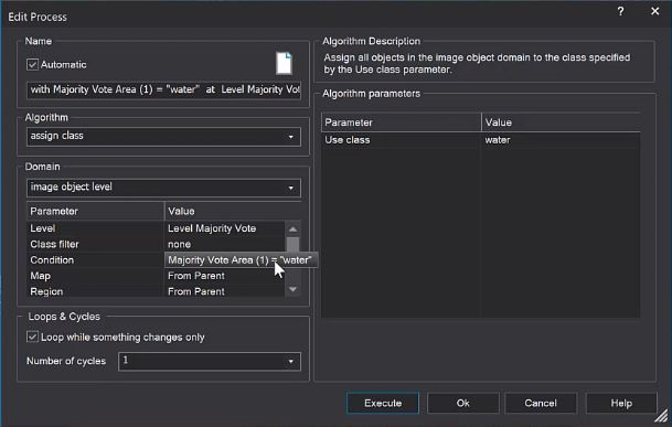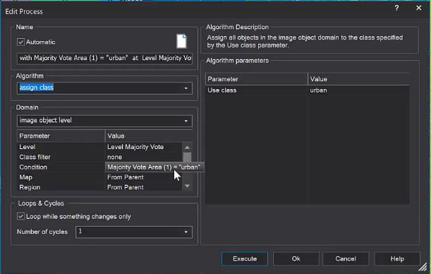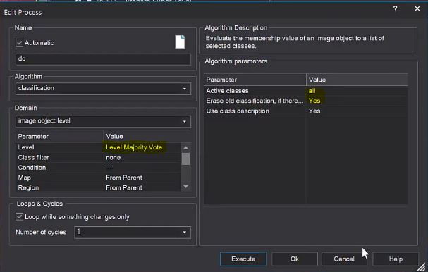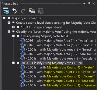 9. 按照规则集顺序执行多数投票特征一,即按地物类型面积进行投票部分,执行结果如下