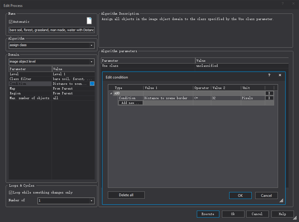 考虑到实际地物特征(道路、建筑等)的空间分布走向非不全是南北,东西走向。所以在采集样本时,可通过将用于采集样本的原始影像旋转不同角度进行样本采集,在eCognition软件中通过数组与变量即可实现,数组取值设置为按照一定步长的旋转角度,变量用于指定采集样本时具体的旋转角度。
