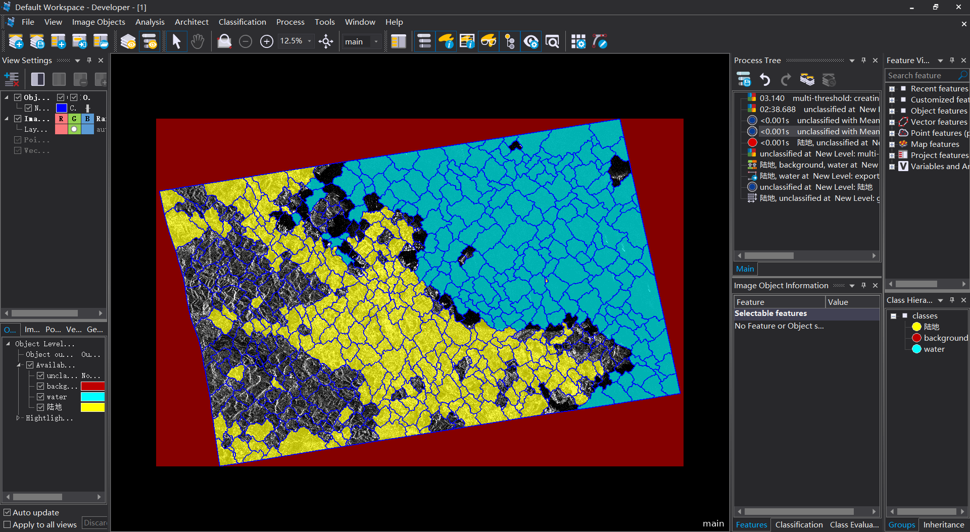9 为了分割更清晰的海岸线---将“未分类”进行二次分割,再对“陆地”和“水体”进行再次分类