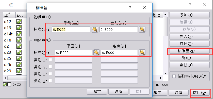 3.4 在有控制点文件的情况下,在工程编辑器 “Project Editor” 中,双击“Points”导入控制点,并设置控制点的标准差。